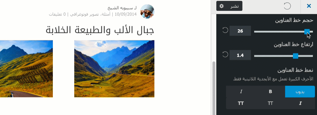 أضفنا مجموعة رائعة من الأدوات للتحكم بحجم وتنسيق الخطوط في موقعك، سواء أردت التحكم بخط النص أو خط العناوين أو خط القائمة الرئيسية أو ارتفاع السطور.