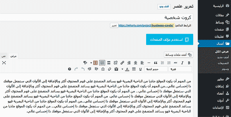 › الرابط (الاسم اللطيف) – هنا اختر ما الذي سيظهر في الرابط الخاص بهذا العنصر. على سبيل المثال: business-cards كما هو موضح بالصورة أعلاه في خانة الرابط الدائم.