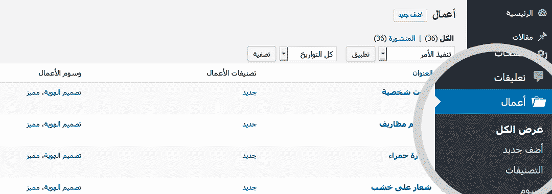 يمكن إنشاء عنصر عمل جديد في لوحة التحكم بالذهاب إلى أعمال > أضف جديد