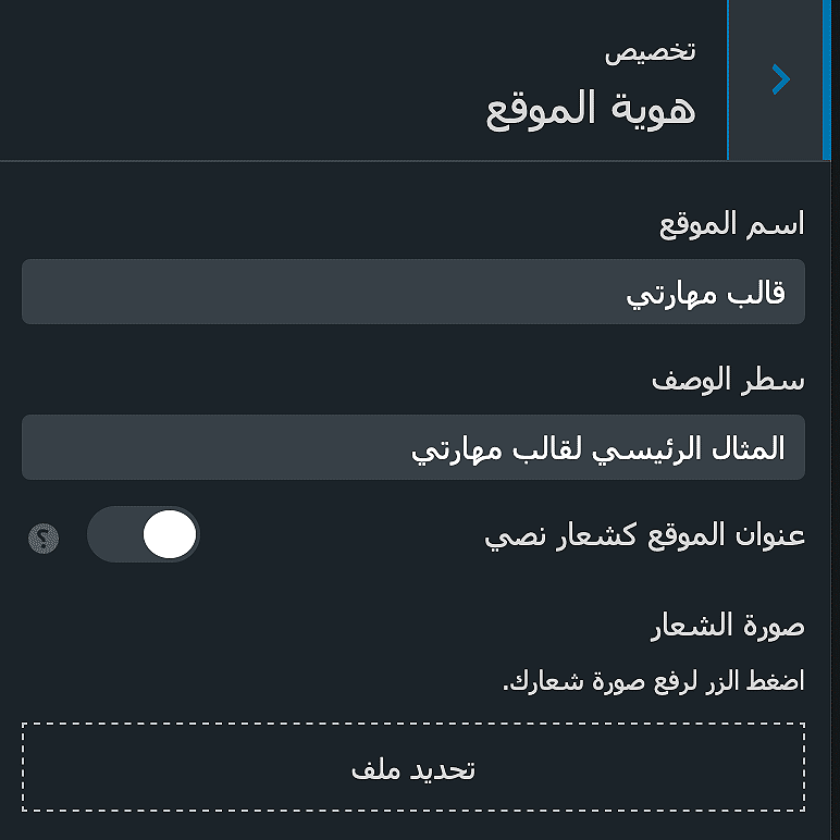** - ستجد ضمن منطقة تخصيص القالب قسم هوية الموقع