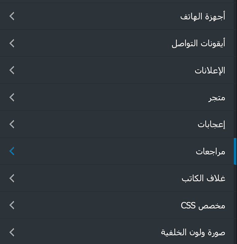للتحكم بالألوان والإعدادات الخاصة بهذه الإضافة قم بالذهاب إلى مهارتي > تخصيص القالب > مراجعات