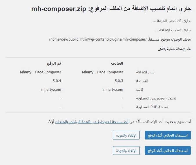 قم برفع مجلد الإضافة mh-composer بكامل محتوياته إلى استضافة موقعك باستخدام ftp في الامتداد التالي: