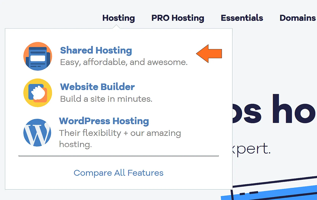 ومن القائمة العلوية للموقع اختر Hosting > Shared Hosting