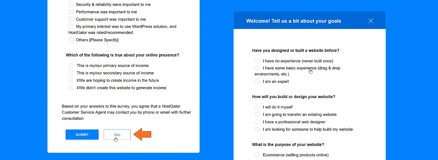 قد ترى صفحة استبيان اختياري كما في الصورة، وقتها يمكنك ضغط skip