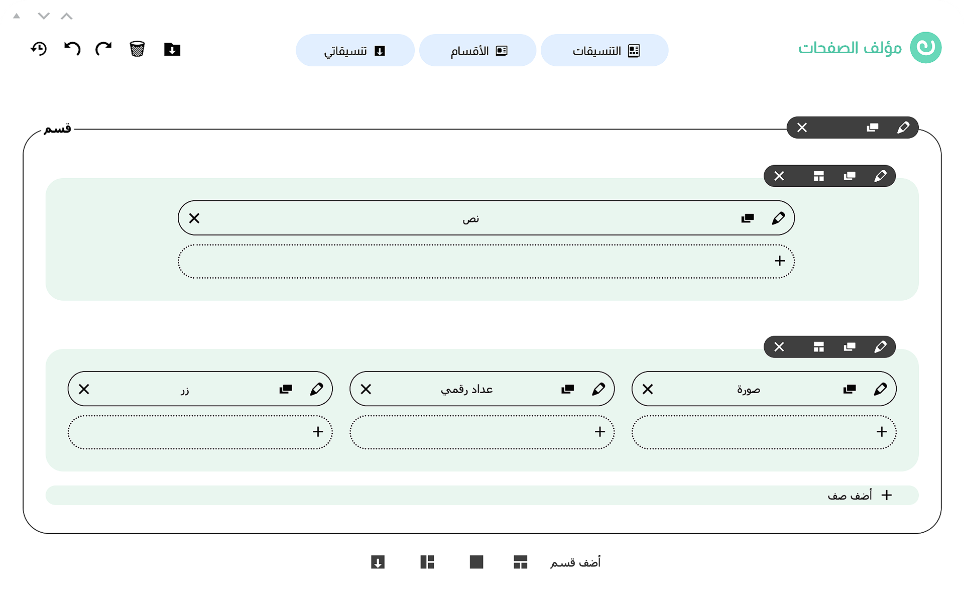 - في الأقسام والمكونات تم جمع الإعدادات التي نستخدمها غالباً في تبويبة واحدة لتكون أقرب