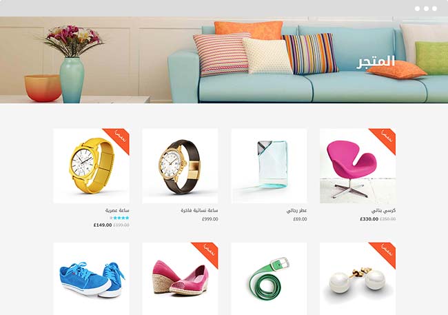 اتجاه النصوص وصور المنتجات متوافق مع اللغة العربية، وهذا بالطبع ينطبق على كل اللغات ذات الاتجاه يمين يسار (RTL). وفي نفس الوقت قالب مهارتي متوافق بنفس القوة مع المواقع الانجليزية واتجاه يسار يمين (LTR)، مما يجعله بفضل الله في مصدرة القوالب عالمياً التي تدعم المواقع متعددة الاتجاه واللغات بشهادة مئات المصممين وروّاد المواقع.