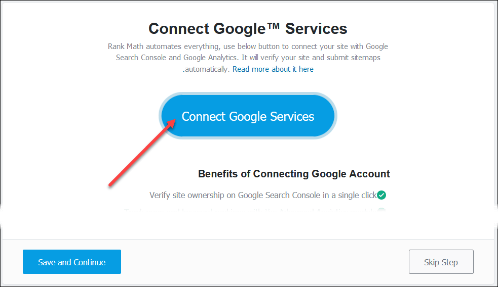 اضغط Connect Google Services لربط موقعك مع خدمات جوجل المشار إليها، مع العلم بأنه يلزمك إعداد بعض الخطوات لدى خدمات جوجل ليكتمل الربط، وهو أمر سهل ستجد تعليمات من جوجل مع كل خطوة فيه.
