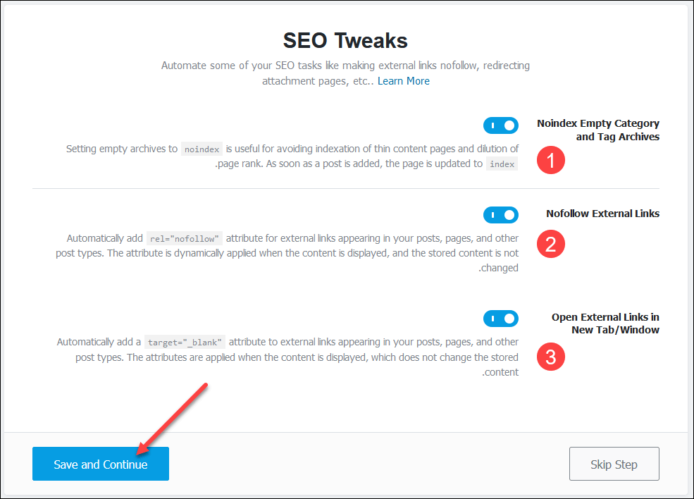 - هذه المرحلة مختصة بطريقة معالجة التصنيفات والوسوم الفارغة، وكذلك الروابط الموجودة في موقعك.