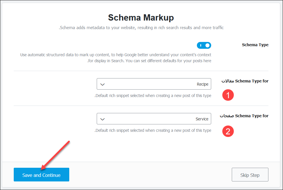 أكمل إعداداتك واضغط Save and Continue للانتقال إلى المرحلة التالية.
