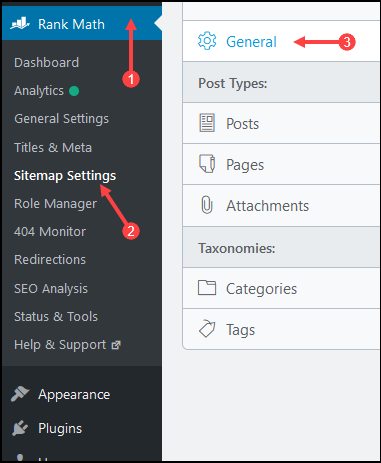 انتقل إلى Rank Math ثم Sitemap Settings ثم General كما بالصورة.