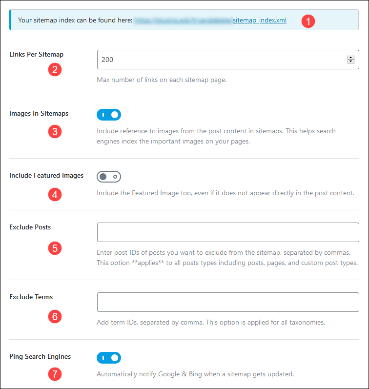 - Ping Search Engines: قم بتفعيل هذا الخيار لإبلاغ محركات البحث عند إجراء أي تحديث على خريطة الموقع، وهذا مهم.