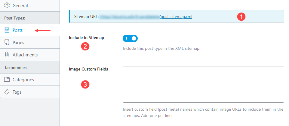 - Include in Sitemap: قم بتفعيل الخيار لجعل خريطة الموقع تتضمن المقالات المنشورة في موقعك. انتبه: إيقاف هذا الخيار معناه إبعاد محركات البحث عن كل مقالات الموقع.